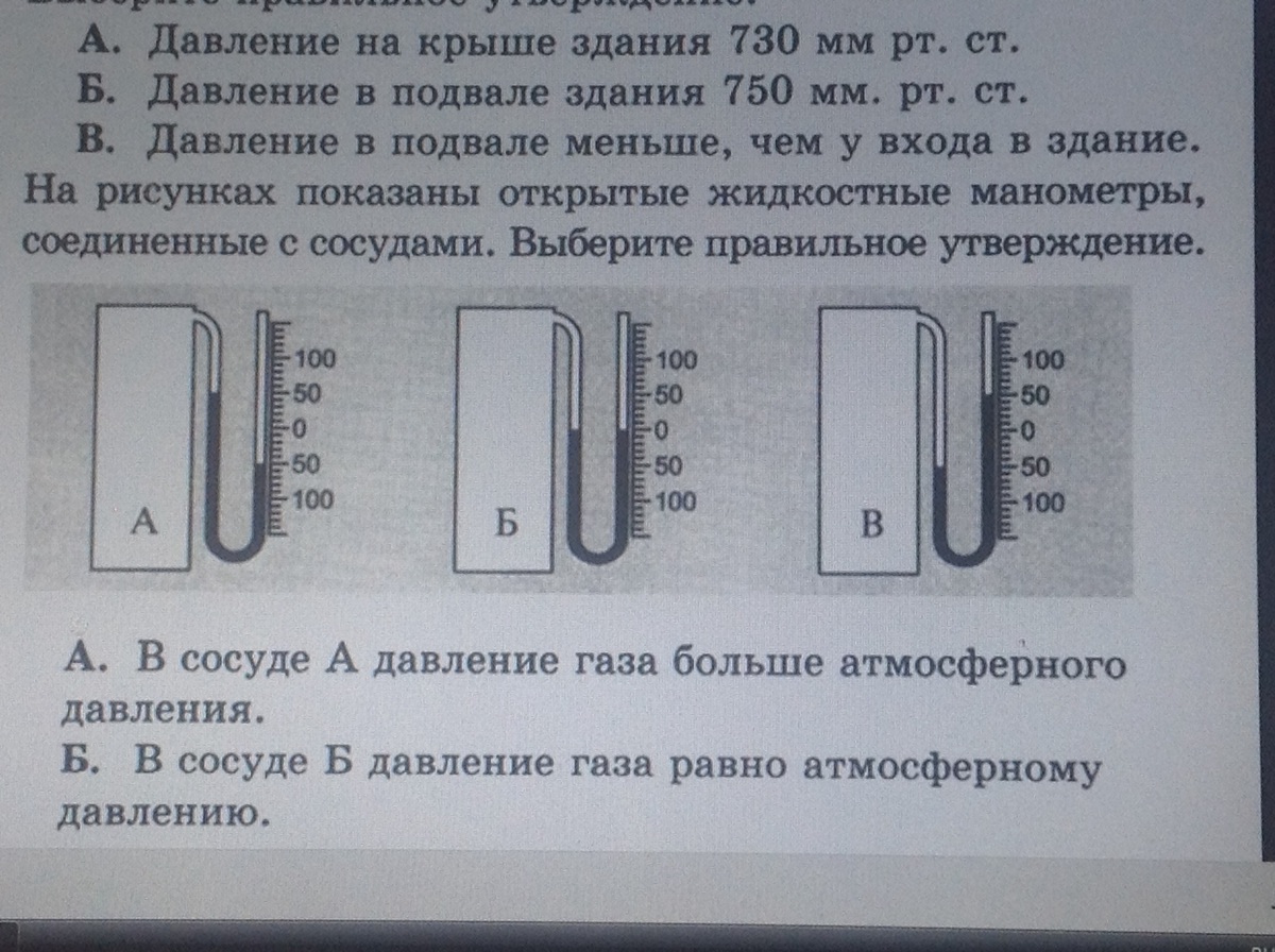 2. Житель высотного здания измерил давление воздуха на крыше, в подвале и у входа в здание и записал следующие данные: 760 мм рт. ст., 750 мм рт. ст., 730 мм рт. ст. Выберите правильное утверждение: