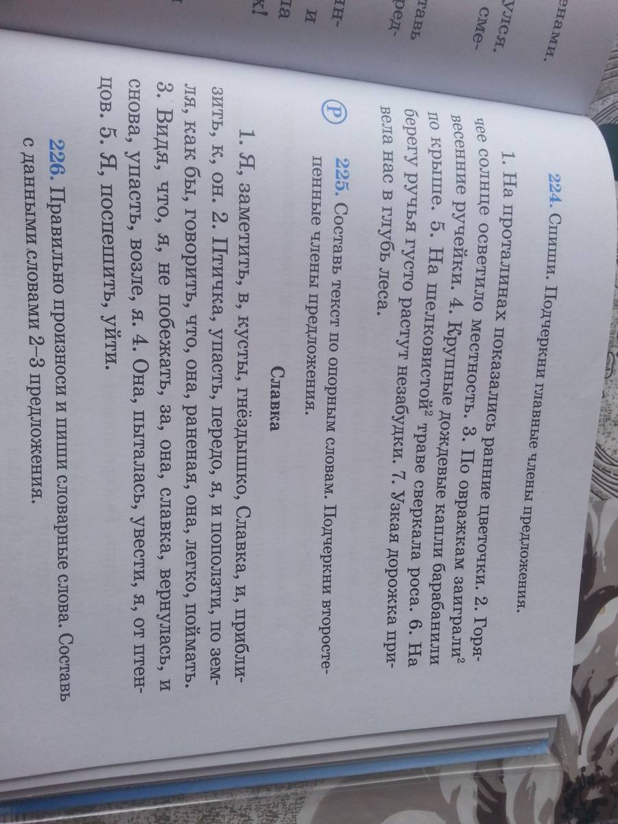 1.Я заметил в кустах(обстоят_._._._) гнездышко(дополнение_ _ _ _ _) Славки(дополнение_ _ _ _ _) и приблизился к нему.