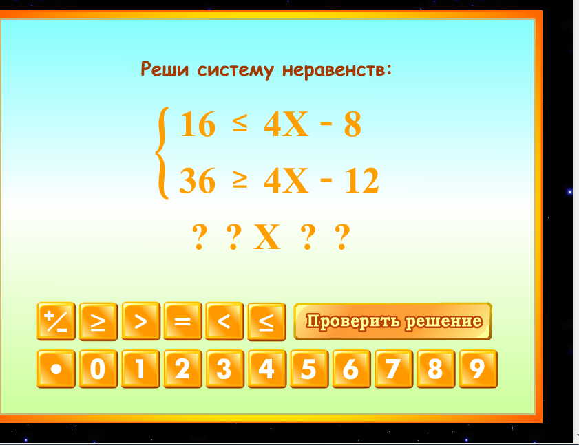 Решение систем неравинств с одной переменной.