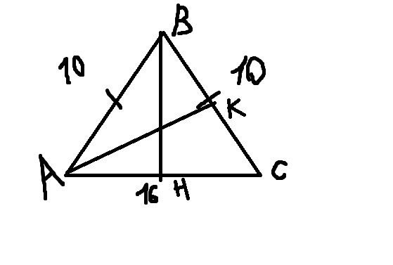треугольник АВС, АВ=ВС=10,