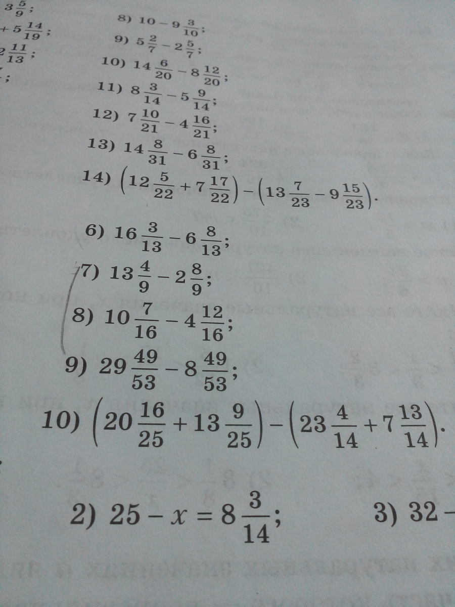 7) 13 4/9 -2 8/9= 12 13/9 - 2 8/9 = 10 5/9