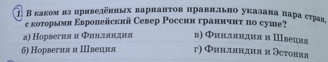 В каком из приведенных вариантов правильно указана Пара стран с которыми Европейский Север России граничит по суше ‚ Норвегия и Финляндия Финляндия и Швеция Норвегия и Швеция Финляндия и Эстония