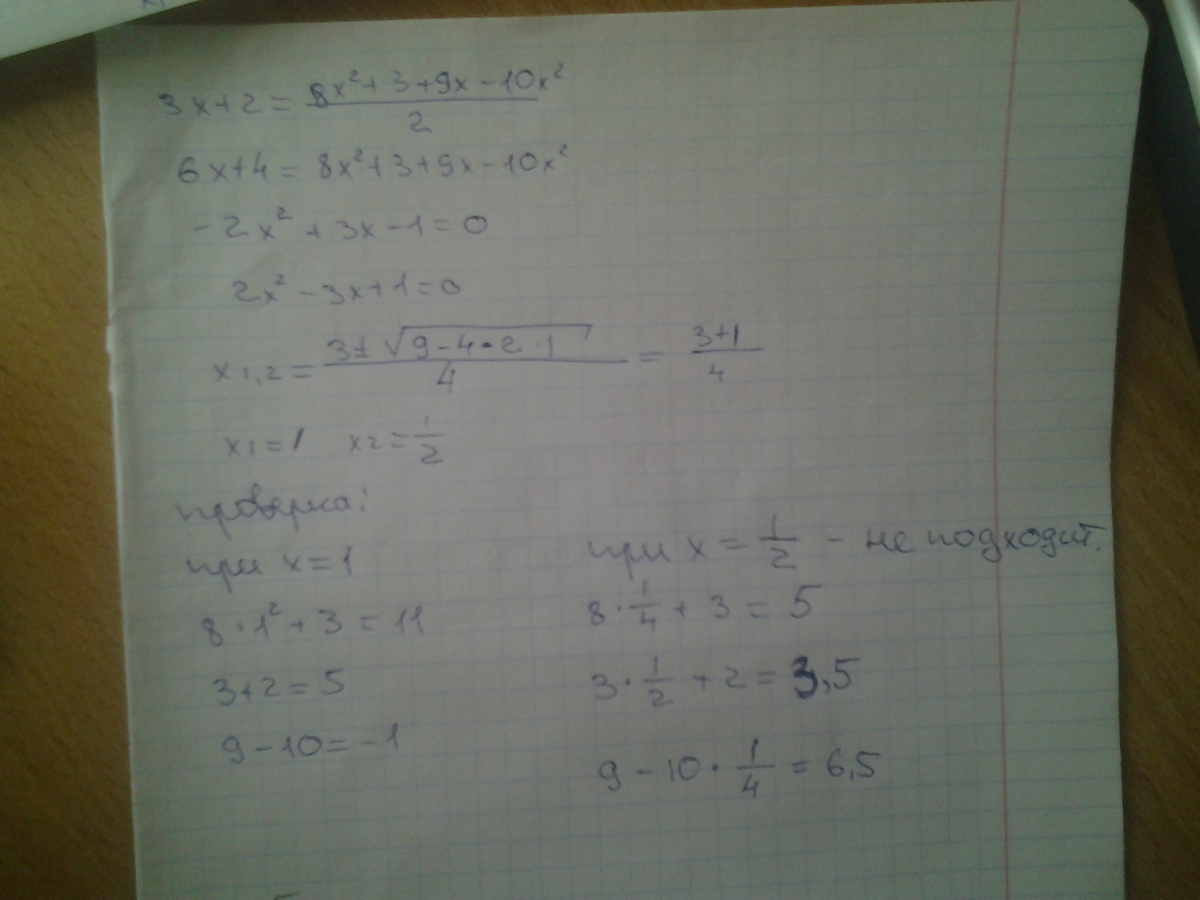 найдите все значения х при которых значения выражений 8х^2+3; 3х+2; 9-10х^2 являются тремя последовательными членами арифметической прогрессии