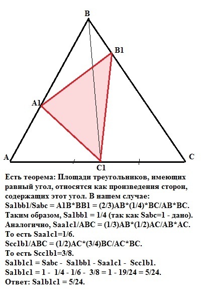 Таким образом, Sa1bb1 = 1/4 (так как Sabc=1 - дано).