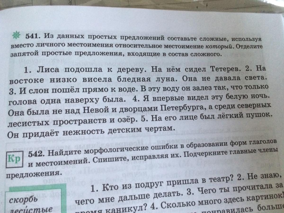 1.Лиса подошла к дереву,на котором сидел Тетерев.2.На востоке низко висела бледная луна,которая не давала света.3. И слон пошёл прямо к воде,в которую он залез так,что только голова одна наверху была.4.Я впервые видел эту белую ночь,которая была не над Невой и дворцами Петербурга,а среди северных лесистых пространств и озёр.5.На его лице был лёгкий пушок,который придаёт нежность детским чертам.