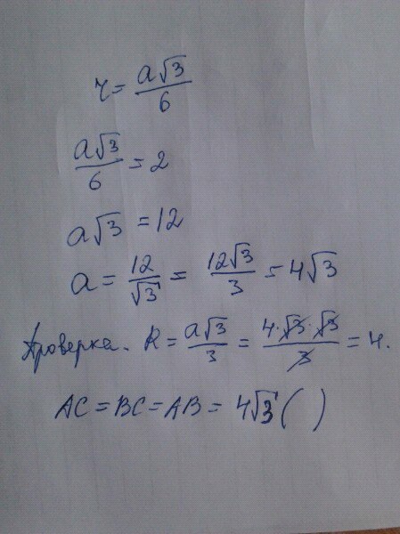 r=(a*корень(3))/6