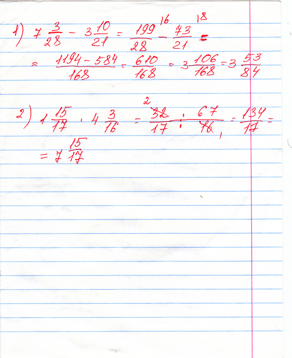 помогите пожалуйста решить дроби а) семь целых три двадцать восьмых минус три целых десять двадцать первых б) одна целая пятнадцать семнадцатых умножить на четыре целых три шестнадцатых