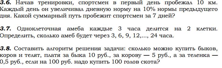 Помогите решить информатику пожалуйста(нужно в 3 циклах) Задачи 3.7 и 3.8, 3.6 не нужно