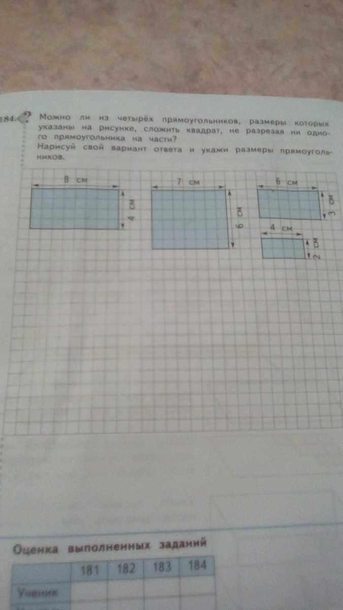 Можно ли из четырёх прямоугольников, размеры которых указаны на рисунке, сложить квадрат, не разрезая ни одного прямоугольника на части?