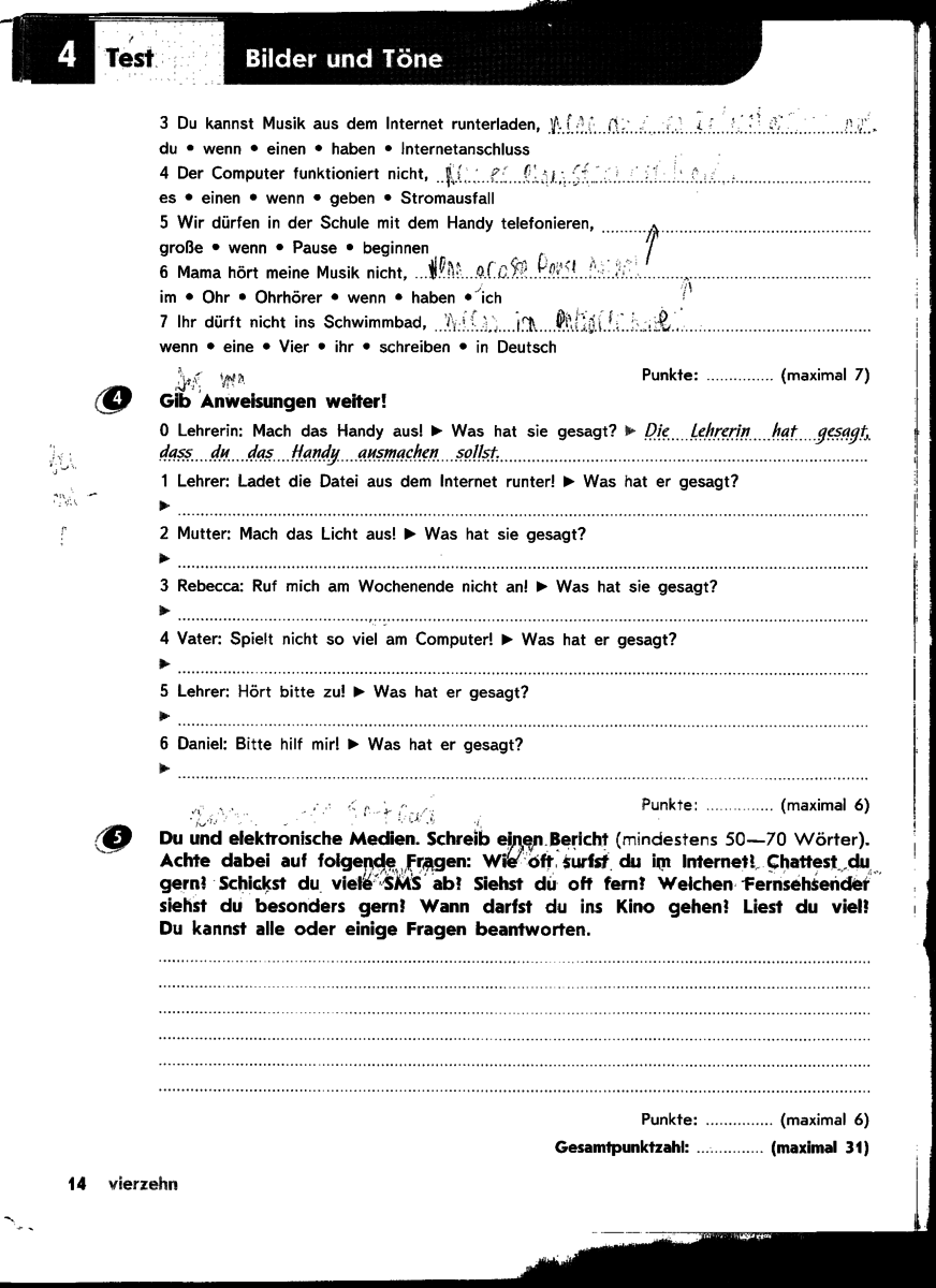 1.Der Lehrer hat gesagt,dass du die Datei ausladen sollst.