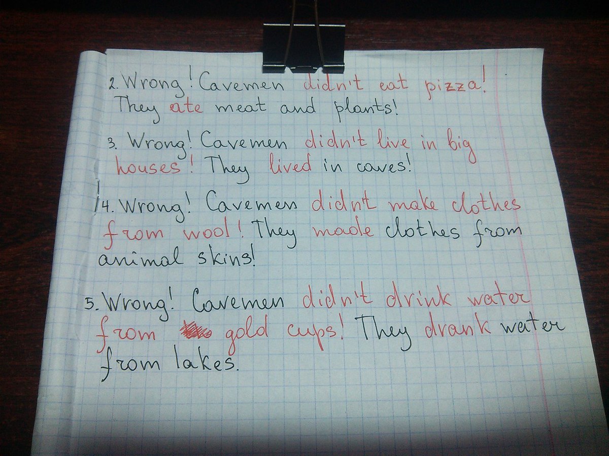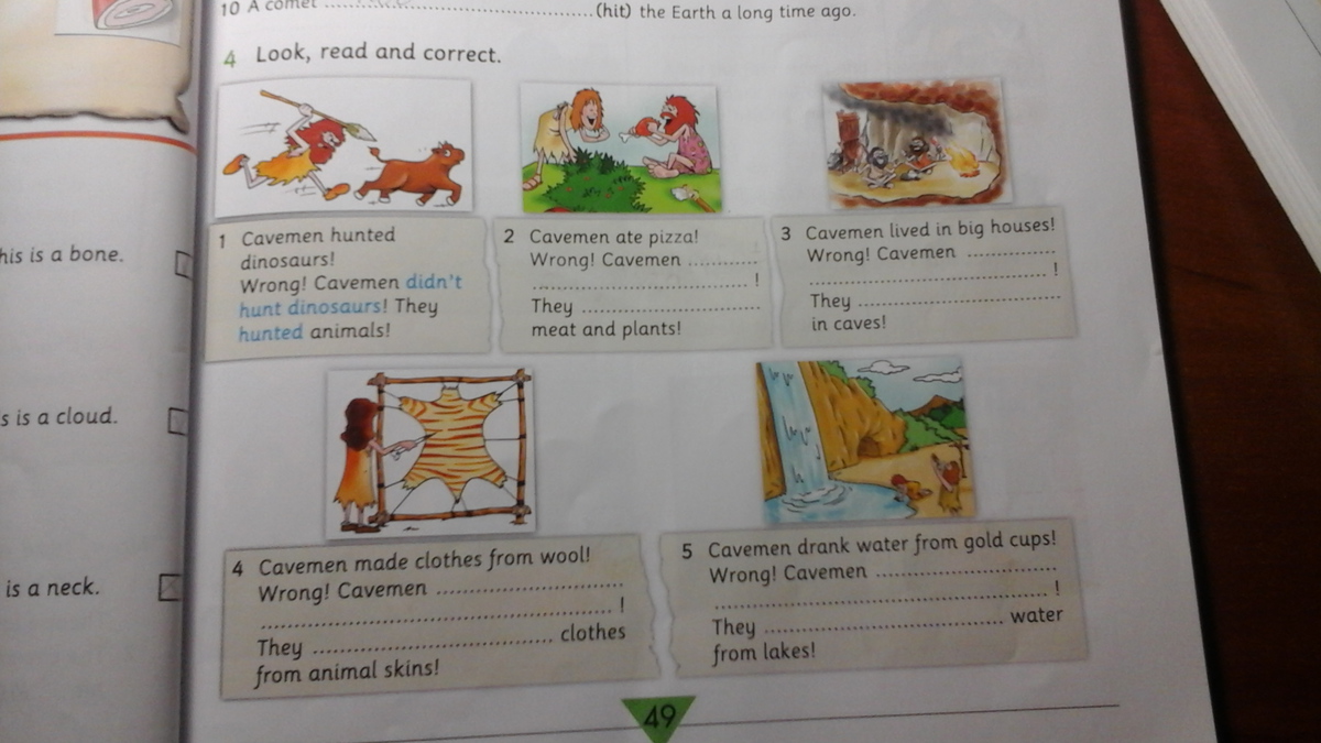 Cavemen ate pizza! Wrong! Cavemen didn't eat pizza! They eat meat and plants!