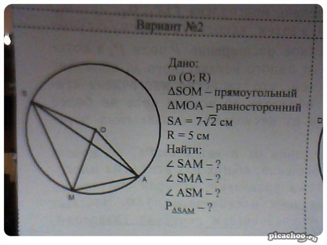( треугольник SOM Прямоугольный и равнобедренный стороны радиусы, значит углы по 45 )