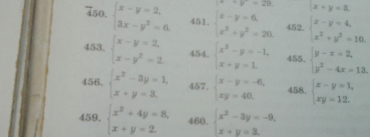 Решила два примера, остальные как братья - близнецы. Решай по образцу: сначала из одного уравнения находишь х или у и подставляешь в другое уравнение. Затем ищешь корни первого неизвестного.