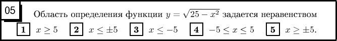 ![25-x^2geq0\x^2-25 leq 0\(x-5)(x+5) leq 0\xin [-5;5] 25-x^2geq0\x^2-25 leq 0\(x-5)(x+5) leq 0\xin [-5;5]](https://tex.z-dn.net/?f=25-x%5E2geq0%5Cx%5E2-25+leq+0%5C%28x-5%29%28x%2B5%29+leq+0%5Cxin+%5B-5%3B5%5D)