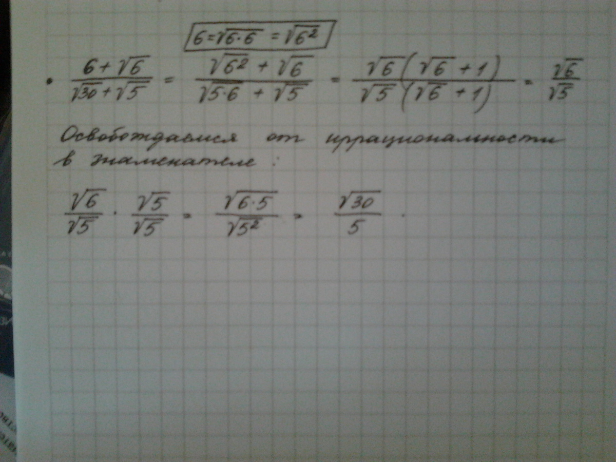 (6+√6)/(√30+√5) = (√6(√6+1))/(√5(√6+1)) = √6/√5