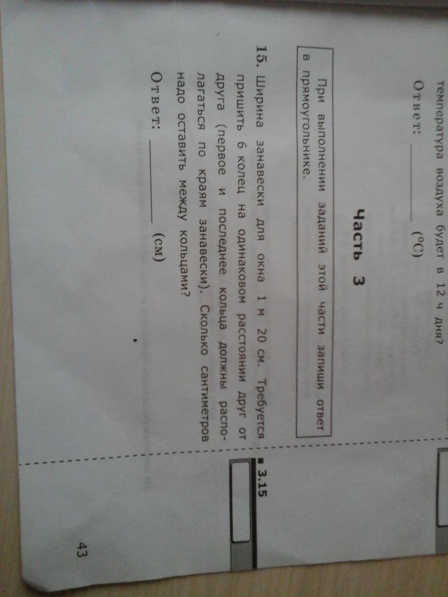 если представить,что занавеска это круг,то 2 кольца по бокам можно считать за одно,потому что они замыкают этот круг,следовательно 1м.20см=120см:5=24.Отв:кольца надо развесить на расстоянии 24 см.