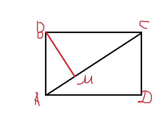 АВ =3х, ВС = 4х. АС = √((3х)²+(4х)²) = 5х. ДИагональ выразили по теореме Пифагора, Выразим перпендикуляр ВМ с помощью формул площади треугольника АВС.