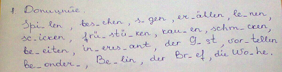 Spielen,besuchen,sagen,erzählen,lernen,schicken,frühstücken,kaufen,