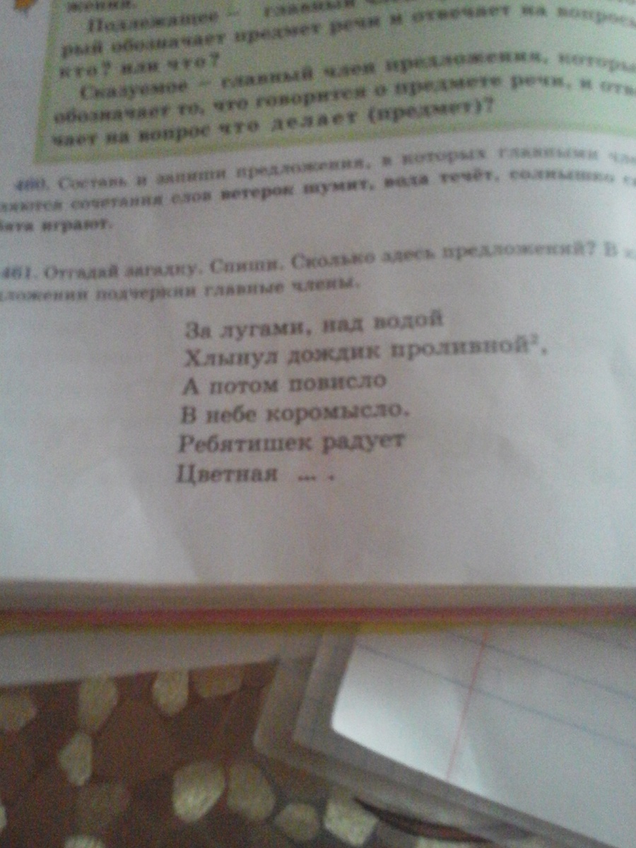 помогите вам видно только загадка я знаю вот задания отгадай загадку. Спиши. Сколько предложений .В каждом предложении подчеркни главные члены