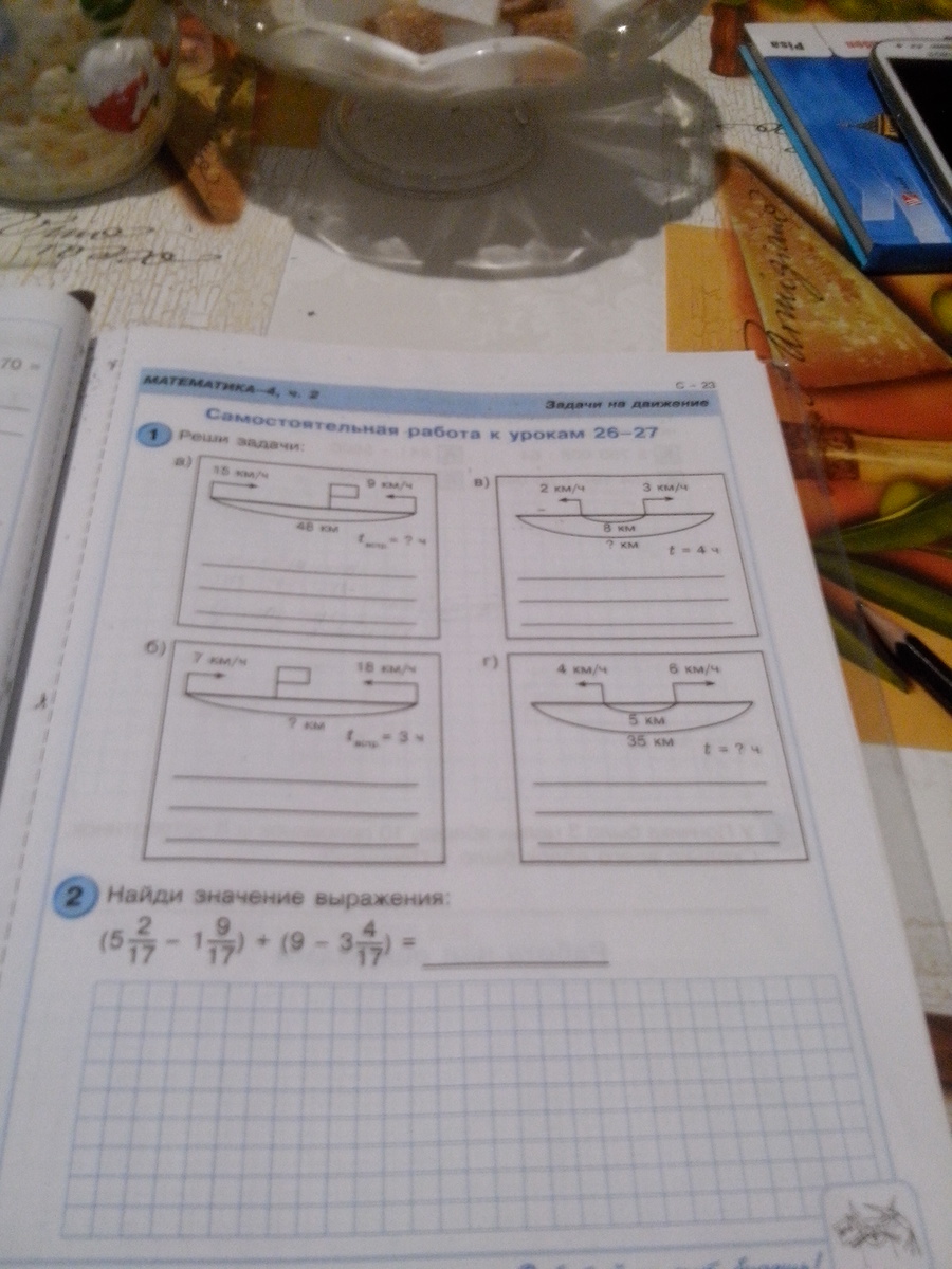 г) 4 км/час+6 км/час=10 км/час (скорость удаления)