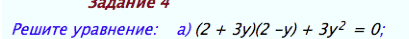 4 - 2у + 6у -3у^2 + 3у^2 = 0