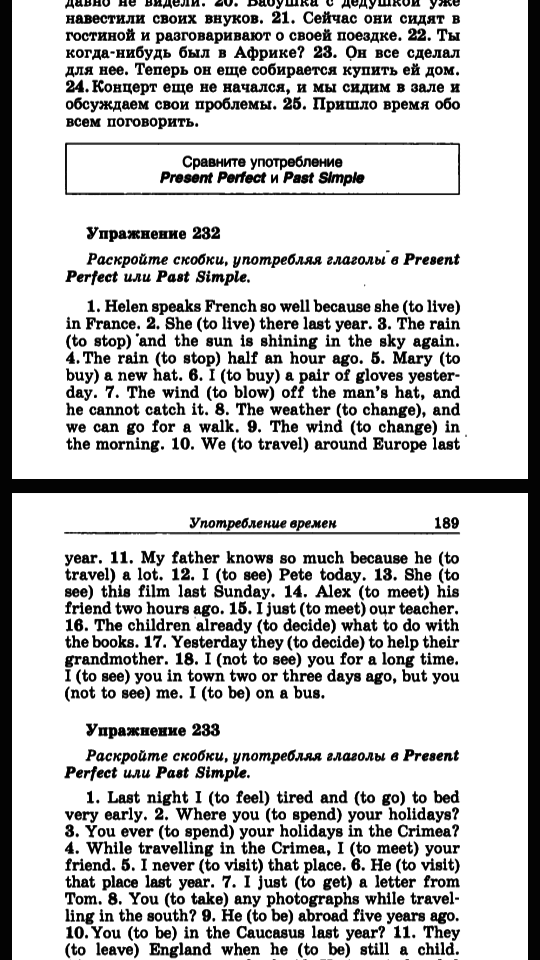 1. Has lived 2. Lived 3. Has stopped 4. Stopped 5. Has bought 6. Bought 7. Bas blown 8. Has changed 9. Changed 10. Traveled 11. Has traveled 12. Saw 13. Saw 14. Met 15. I have just met... 16. The children have already decided... 17. Decided 18. Haven't seen you 19. Saw, didn't see. Was