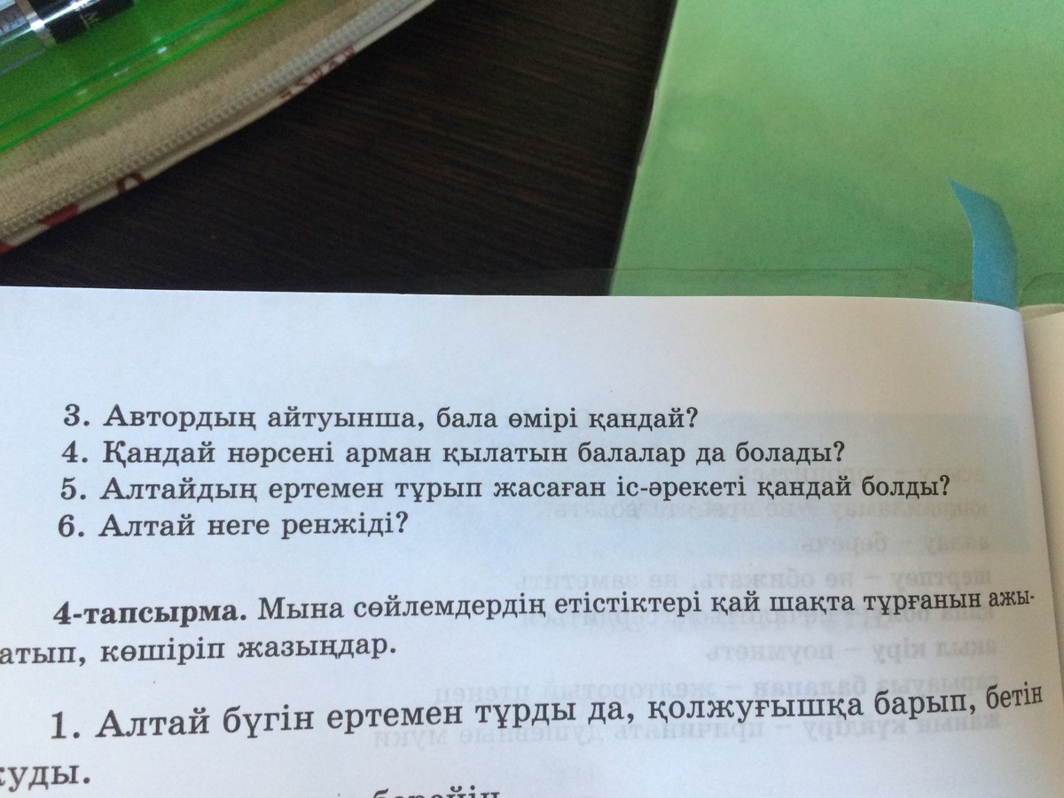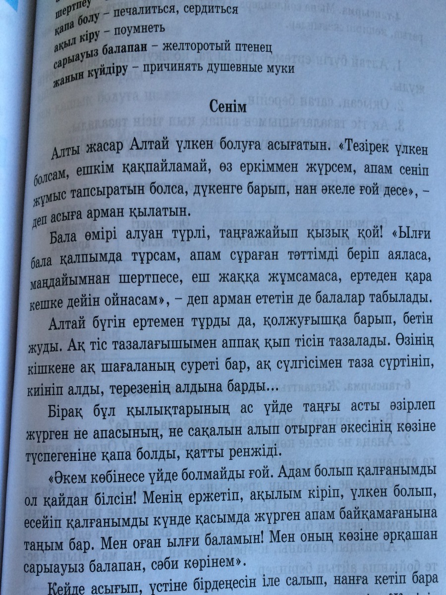 6. Ол оның тіс жуғанын, бетін сүрткенін анасы немесе әкесі көрмегенге ренжіді.