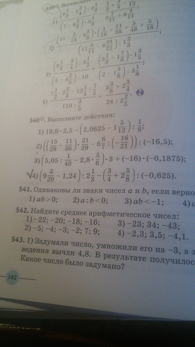 [9 3/20- 1,24]: 2 1/3- [3/4+2 5/8]: [-0,625)= 8 79/100. По действиям; сперва переведём; ___________________________________ 1,24= 124/100; (-0,625)= -625/1000=-25/40= -5/8; (сократили на 25 и потом ещё на 5); ___________________________________1))) [9 3/20- 124/100]= [(9*20+3)/20 - 124/100]= [183/20- 124/100]= [(183*5)/(20*5)- 124/100]= [915/100- 124/100]= 791/100; __________________________________ 2))) 791/100: 2 1/3= 791/100: (2*3+1)/3= 791/100: 7/3= 791/100* 3/7= 113/100* 3/1= 339/100; ___________________________________ 3))) [3/4+ 2 5/8]= [3/4+ (8*2+5)/8]= [3/4+ 21/8]= [(3*2)/(4*2)+ 21/8]= [6/8+ 21/8]= 27/8; ___________________________________ 4))) 27/8: (-5/8)= 27/8* (-8/5)= 27/1* (-1/5)= (-27/5); теперь из 2))) вычитаем 4)))) >>>>>>> 5))) 339/100- (-27/5)= 339/100+ 27/5= 339/100+ (27*20)/(5*20)= 339/100+ 540/100= 879/100= 8 79/100.