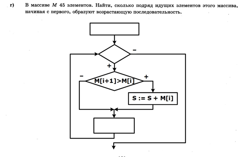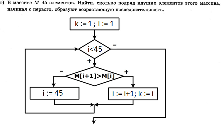 ЗАПОЛНИТЬ ПРОПУСКИ с пояснением - алгоритмизация. В массиве М 45 элементов. Найти, сколько подряд идущих элементов этого массива, начиная с первого, образуют возрастающую последовательность.