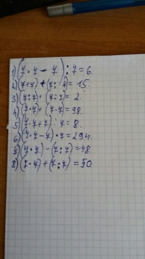 расставь знаки арифметических действий если нужно скобки 7 7 7 7= 6 7777=15 7777=2 7777=98 7777=8 7777=294 7777=48 7777=50
