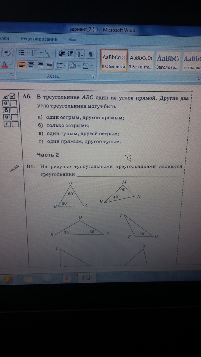 Прямоуголный треугольник - треугольник, у которого один угол - прямой, а два других - острые.