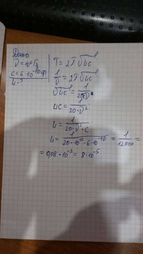 Цепь состоит из конденсатора ёмкостью 600 пФ. Какую нужно подобрать индуктивность катушки, чтобы резонанс напряжений наступил при частоте 10^6 гц?