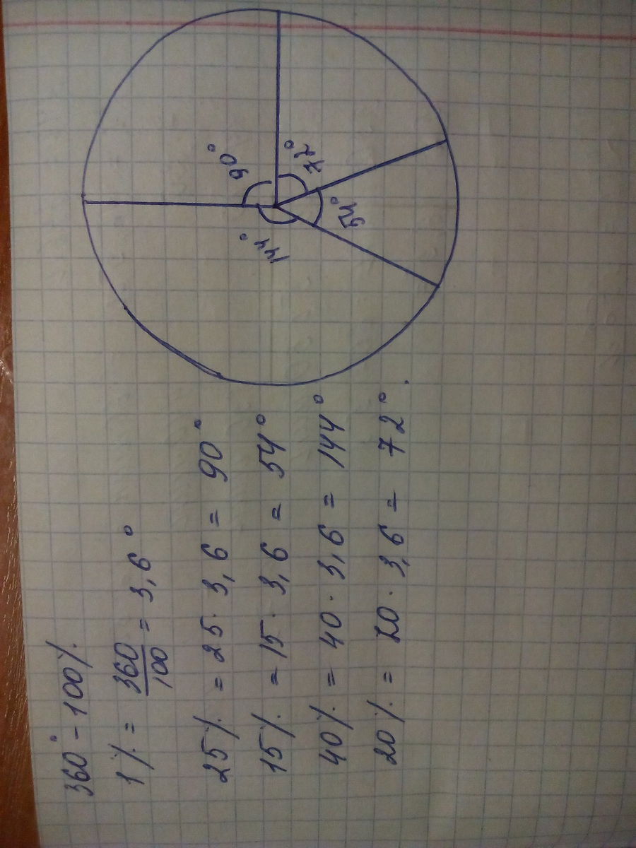 Нужно начертить круговую диаграмму, по процентам определить какую часть надо закрашивать.