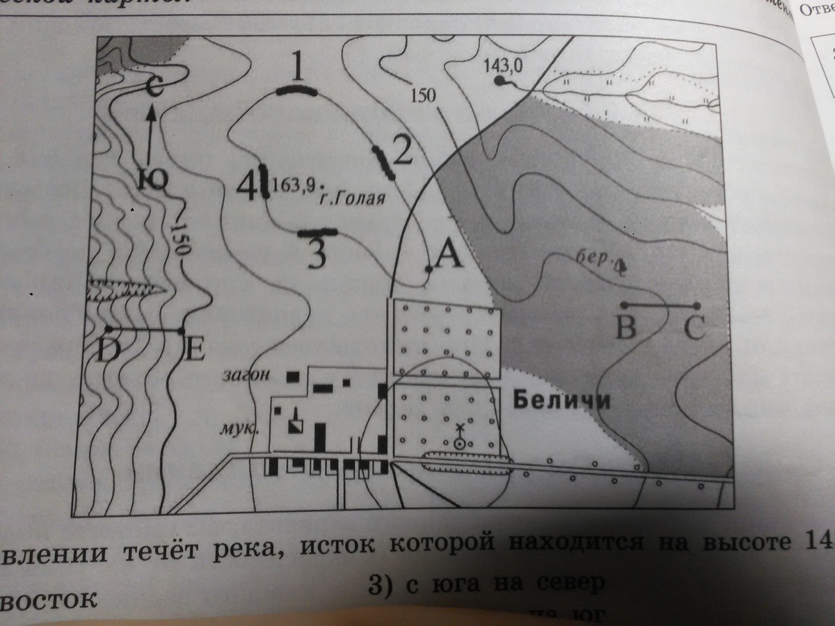 у тебя через 5 м. потому что от отметки 150 до горы Голой 2 горизонтали. уменьшаем 163,9м до целого десятичного числа это 160. 160-150=10 10/2 горизонтали=5м.