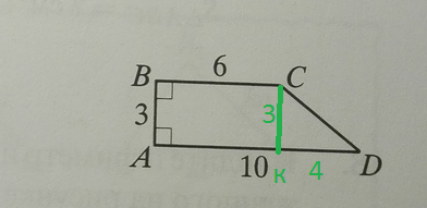 S=(BC+АД)·AB/2=(6+10)·3/2=8·3=24 кв. см