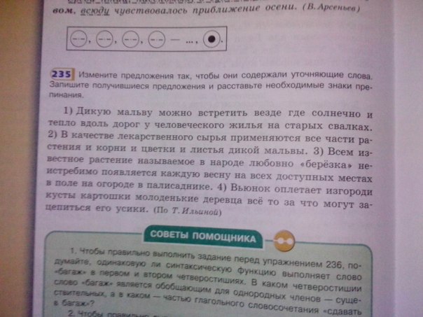 1) Дикую мальву можно встретить везде, где солнечно и тепло, даже вдоль дорог у человеческого жилья, на старых свалках.2) В качестве лекарственного сырья, применяются все части растения: и корни, и цветки, и даже листья дикой мальвы.3) Всем известное растение, называемое в народе, любовно, "Березка", неистребимо появляется каждую весну на всех доступных местах: в поле, на огороде, и даже в палисаднике.4) Вьюнок оплетает изгороди, кусты картошки, даже маленькие деревца: все, за что могут зацепиться его усики.
