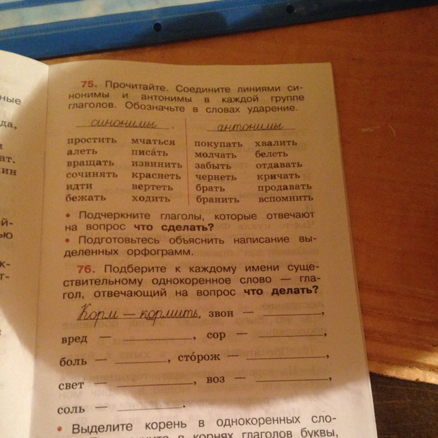 75. Между "" находяться глаголы, отвечающие на вопрос что сделать? Заглавная буква обозначает ударение или проверенную букву.