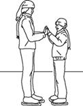 Женщина массой 70 кг и её сын массой 35 кг стоят на льду, как показано на верхнем рисунке. Затем они в течение 0,6 с отталкиваются друг от друга и начинают скользить в разные стороны. У кого импульс после взаимодействия больше-у матери или у сына?