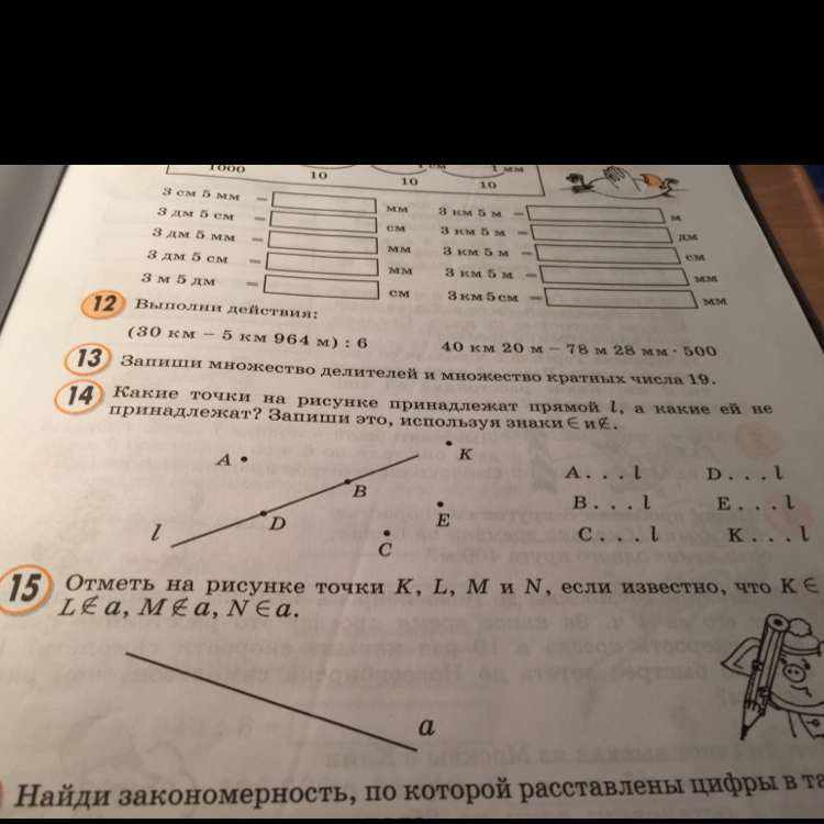 Какие точки на рисунке принадлежат прямой l , а какие не принадлежат ? Запиши это используя знаки ...