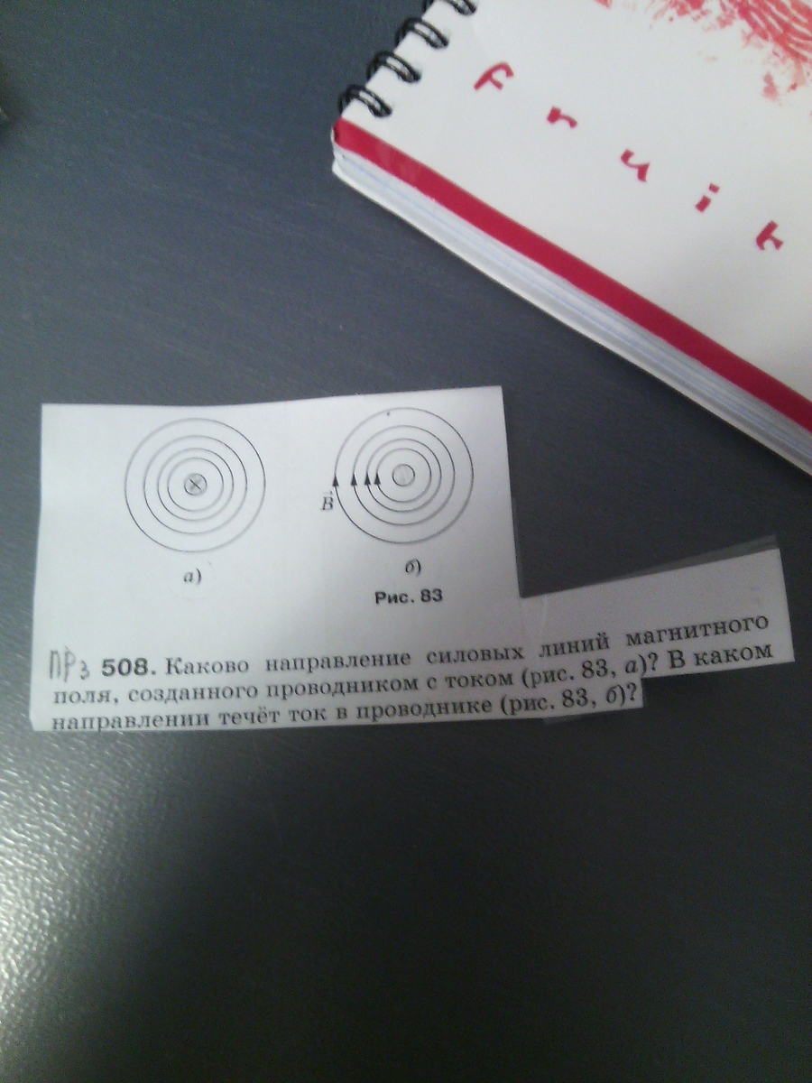 В каком направлении течёт ток в проводнике? (рис 83, б)