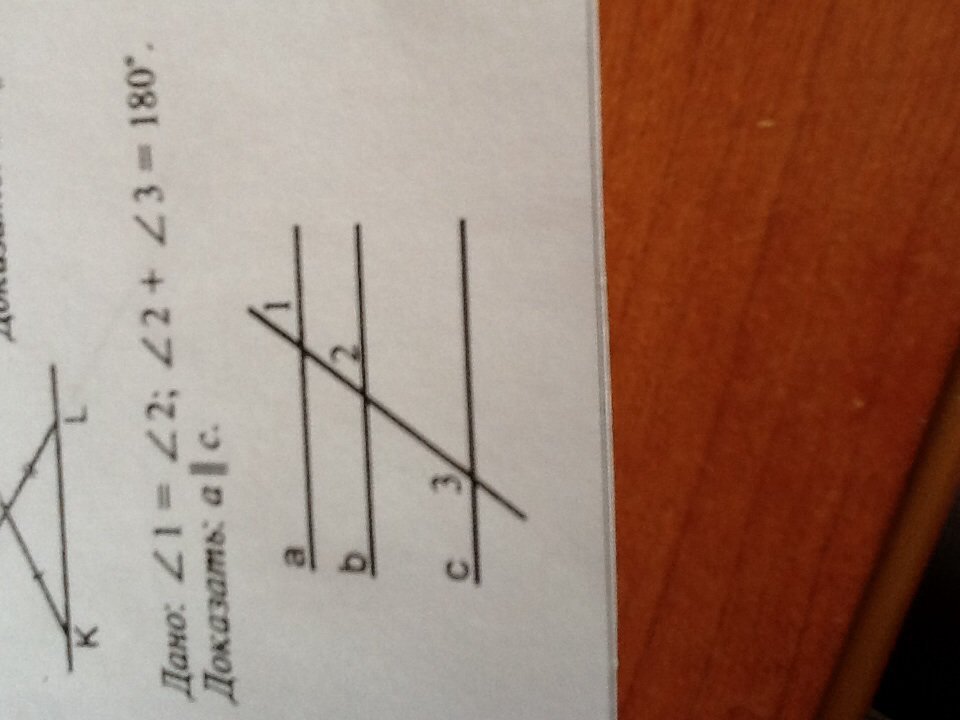 По условию ∠2 + ∠3 = 180°, но ∠2 = ∠4, значит ∠4+ ∠3 =180°. А если сумма односторонних углов при двух прямых и секущей равна 180°, то прямые ( а и с) будут параллельны.