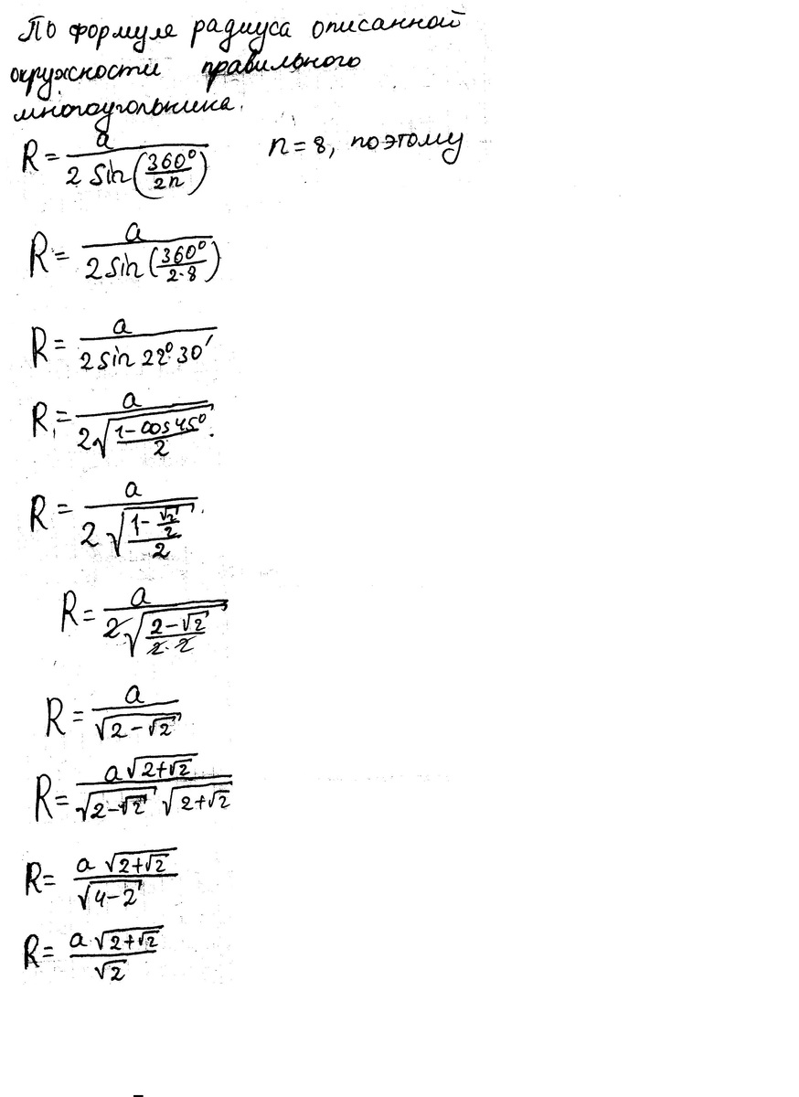 3) Найти радиус описанной около правильного восьмиугольника со стороной а (с подробным объяснением)