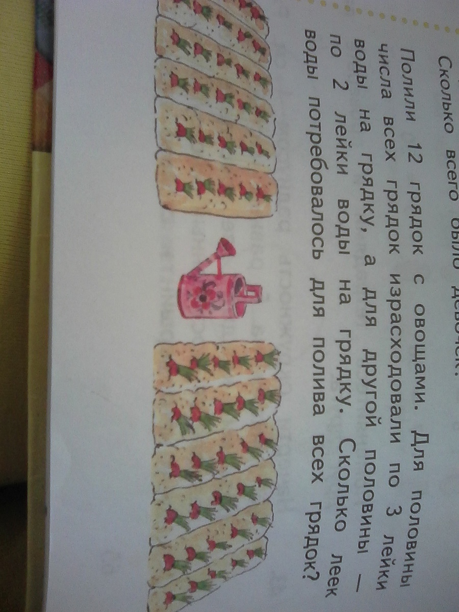 1) 12:2=6 грядок это половина всех грядок