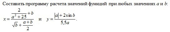 y := (abs(a)+2*sin(b))/(5.5*a);