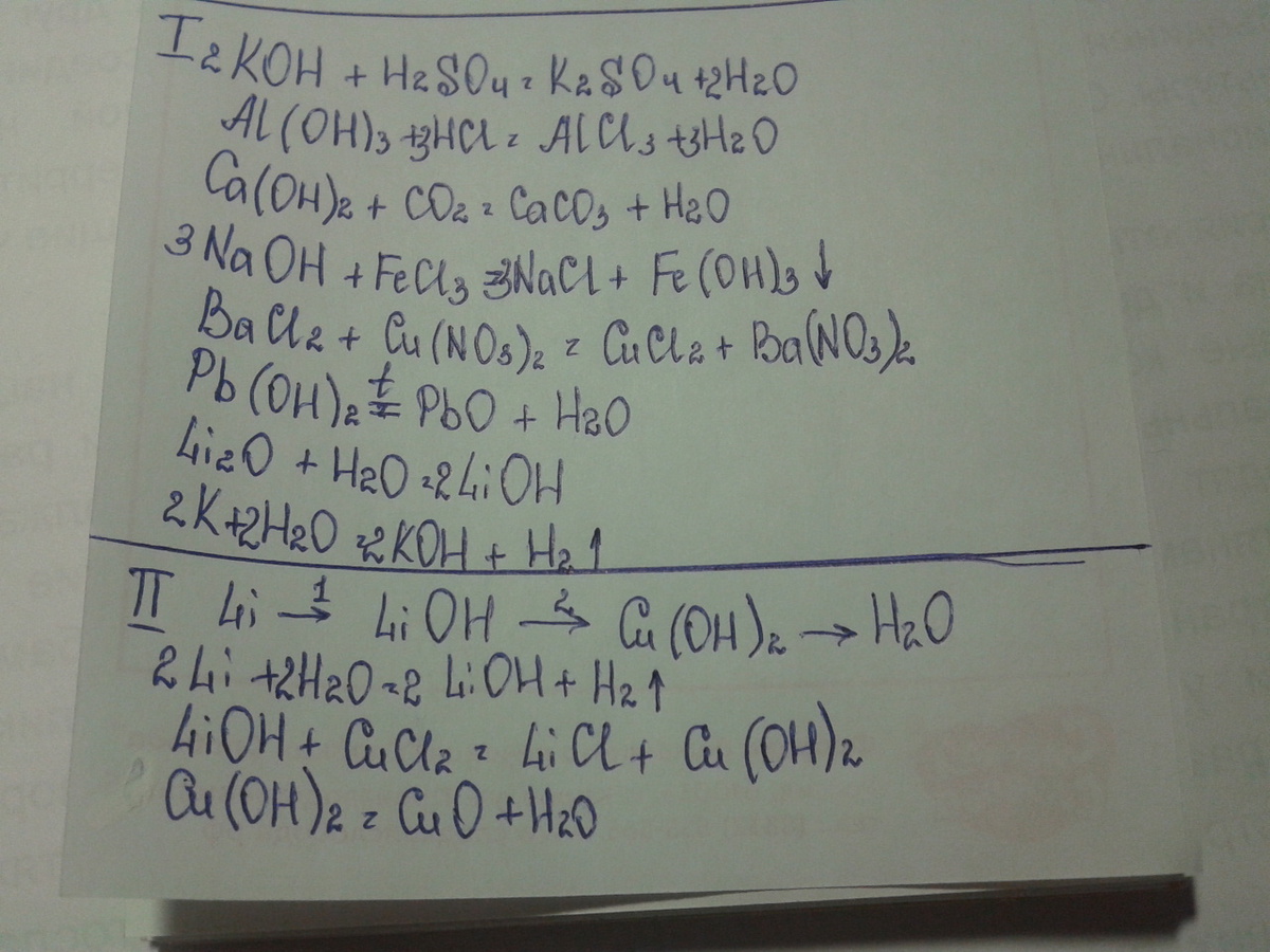 а) KOH + H2SO4 - б) Al(OH)3 + HCl - в) Ca(OH)2 + CO2 - г) NaOH + FeCl3 -