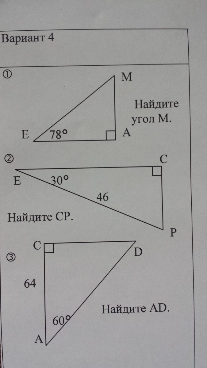 3) Сумма острых углов в прямоугольно треугольнике: 90 =>