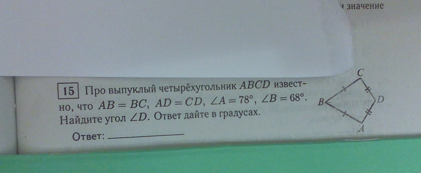 Рассмотрим ΔВСD и ΔВАD: ВС=ВА, CD=DA, BD-общая⇒ΔDCВ=ΔВАD(по 3м сторонам)⇒∠С=∠А=78(как соответственные элементы в равных треугольниках)