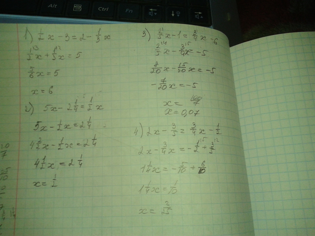 1/2х-3=2-1/3х 5х-2целых1/4=1/2х 2/5х-1=3/4х-6 2х-3/5=3/4х-1/2 ПОМОГИТЕ РЕШИТЬ ПОЖАЛУЙСТА НЕ ДЕСЯТИЧНЫМИ ДРОБЯМИ