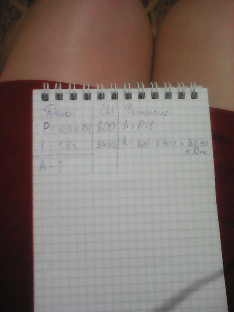 мощность электрического утюга равна 0,6 кВт. вычислите работу тока в нем за 1,5 ч. сколько при этом расходуется энергия