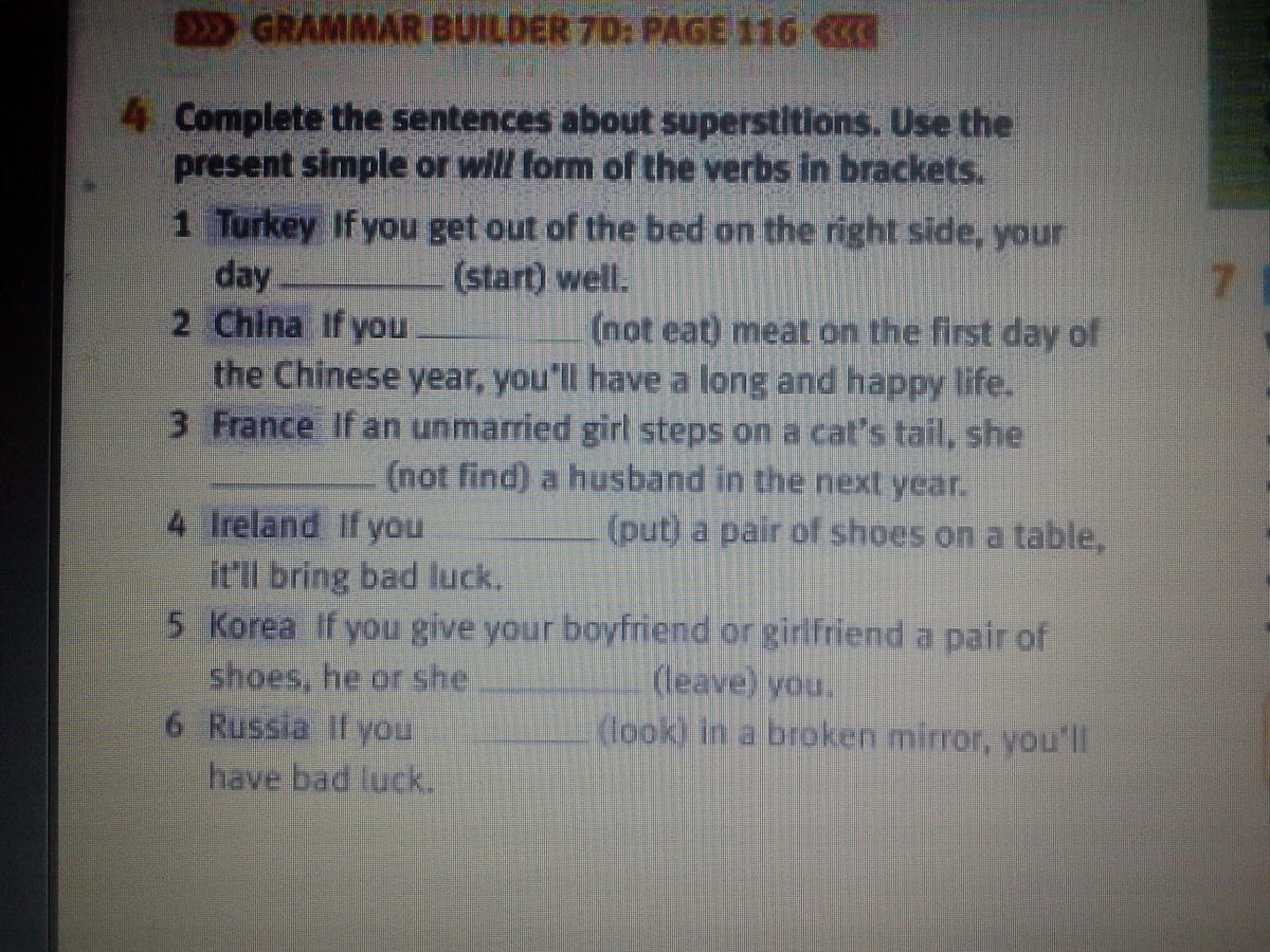 1) started2) not eting3) not fiinted4)putting5)lived6) lookd